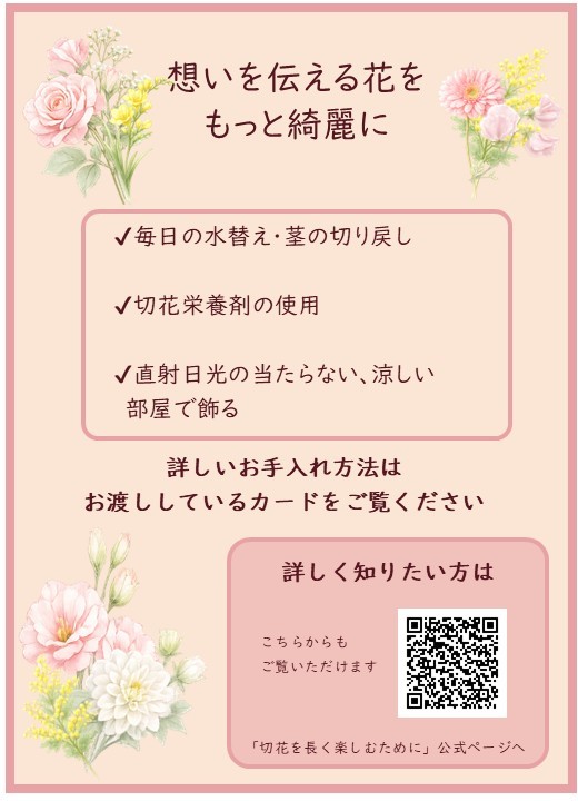 ブ・ブランでは、切花をご購入いただいた方へ
